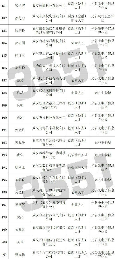 為適應(yīng)全面建設(shè)“世界光谷”新征程的發(fā)展要求,2018年4月,東湖高新區(qū)啟動第十一批“3551光谷人才計劃”,經(jīng)項目征集、資格審查、第三方知識產(chǎn)權(quán)機(jī)構(gòu)核查、第三方權(quán)威機(jī)構(gòu)答辯評審、實地考察等環(huán)節(jié),決定對擬入選的224個人才項目給予共計約1.418億元無償資助及8000萬元股權(quán)投資。現(xiàn)將第十一批“3551光谷人才計劃”擬資助人才項目向社會公示。